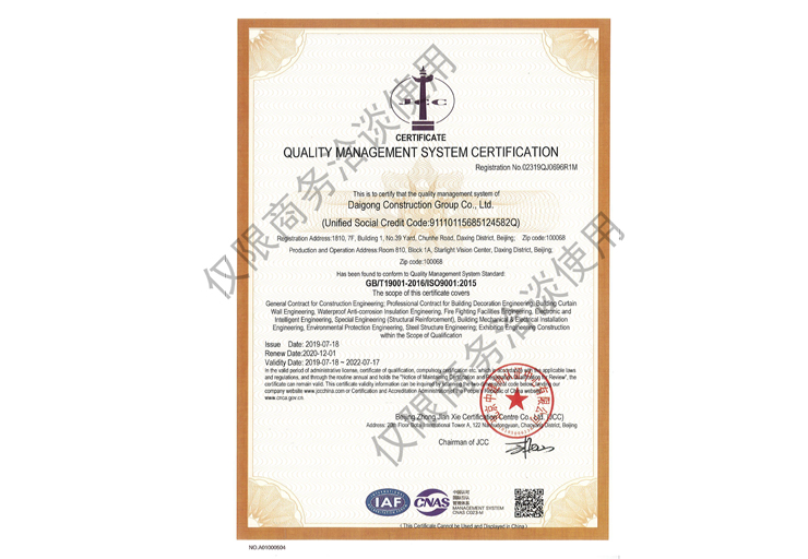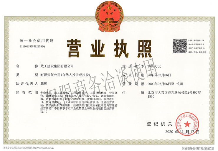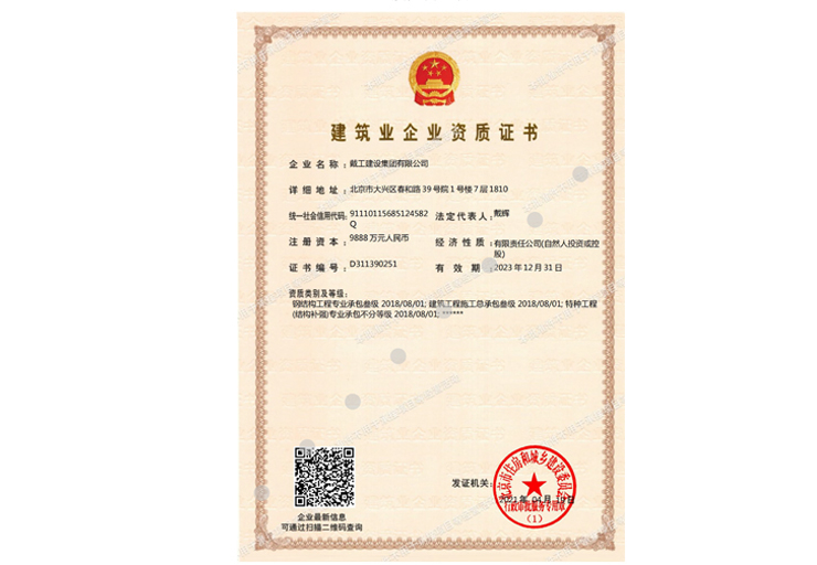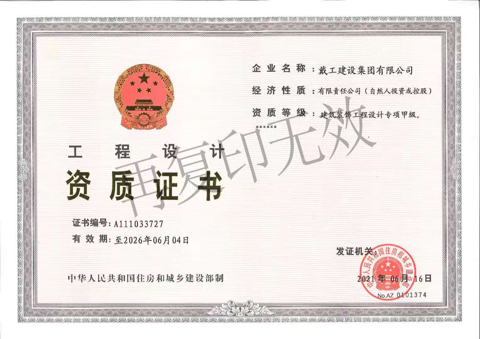 戴工建設(shè)集團(tuán)有限公司,創(chuàng)建于2009年,注冊(cè)資本9888萬(wàn)元人民幣。公司位于北京市大興區(qū)。具有建委頒發(fā)的建筑裝飾裝修專(zhuān)業(yè)壹級(jí),防水保溫工程專(zhuān)業(yè)壹級(jí),建筑幕墻專(zhuān)業(yè)貳級(jí),消防設(shè)施專(zhuān)業(yè)貳級(jí),電子與智能化專(zhuān)業(yè)貳級(jí),特種工程(結(jié)構(gòu)補(bǔ)強(qiáng))專(zhuān)業(yè)不分等級(jí),建筑機(jī)電安裝專(zhuān)業(yè)貳級(jí),環(huán)保工程專(zhuān)業(yè)貳級(jí),鋼結(jié)構(gòu)專(zhuān)業(yè)貳級(jí),建筑工程總承包貳級(jí),建筑裝飾工程設(shè)計(jì)專(zhuān)項(xiàng)甲級(jí),展覽陳列工程設(shè)計(jì)與施工壹級(jí),展覽展示工程壹級(jí)...更多>>